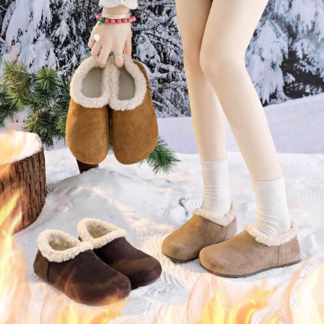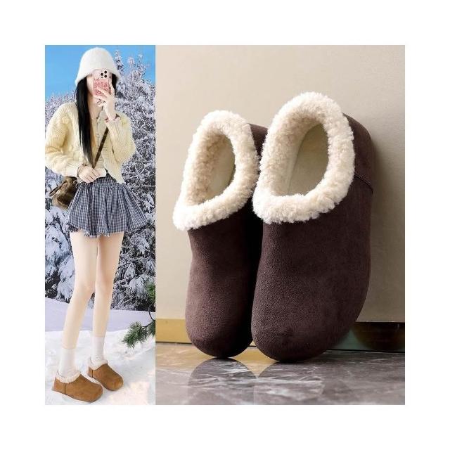 勃肯鞋女冬天樂福鞋加絨保暖靴全包靴子女款媽媽平底鞋百搭休閒鞋防滑鞋防風防寒大童刷毛懶人鞋學生一腳蹬鞋子青年止滑棉鞋老人鞋