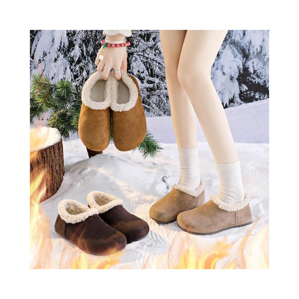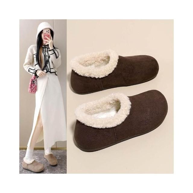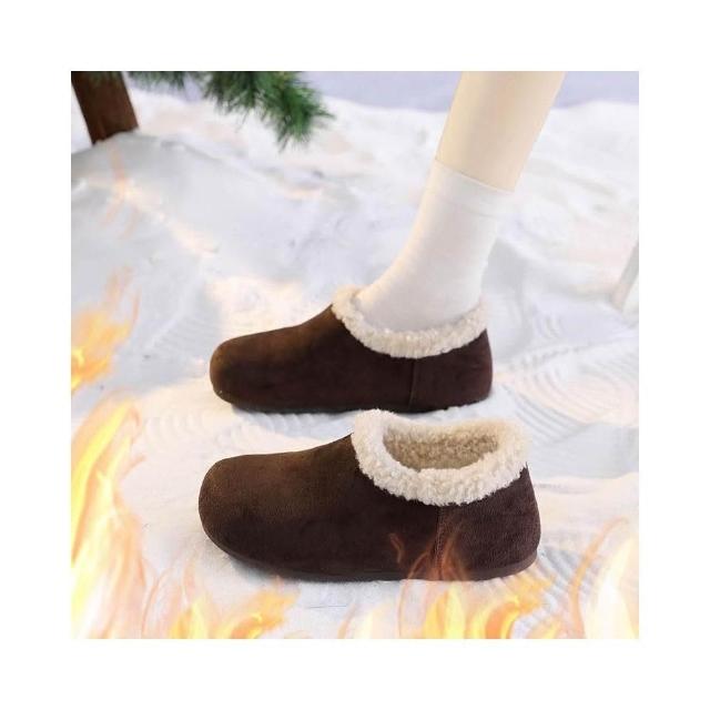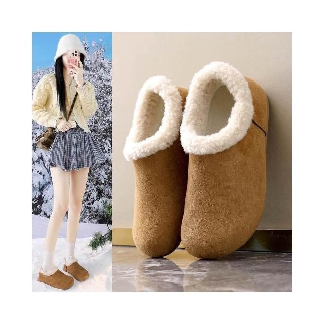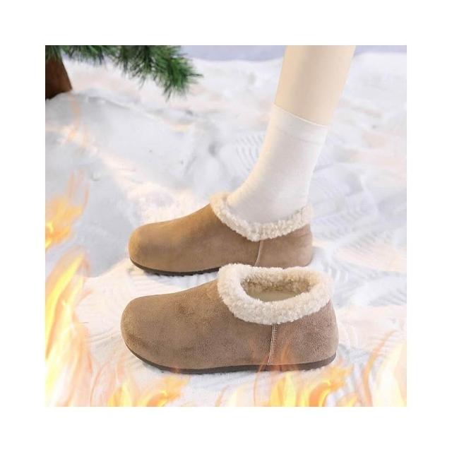 勃肯鞋女冬天樂福鞋加絨保暖靴全包靴子女款媽媽平底鞋百搭休閒鞋防滑鞋防風防寒大童刷毛懶人鞋學生一腳蹬鞋子青年止滑棉鞋老人鞋