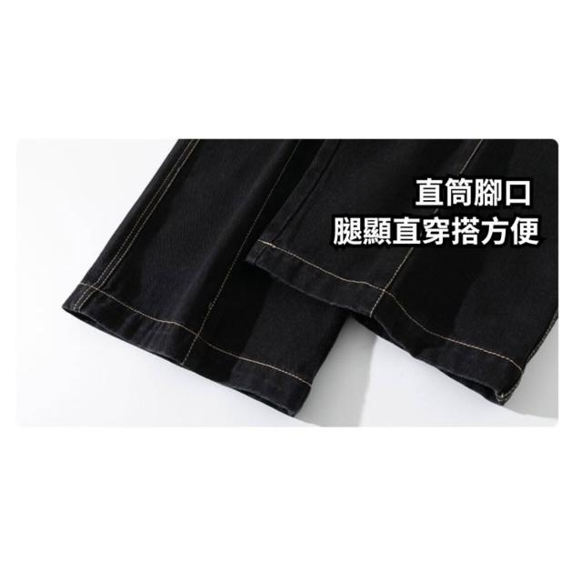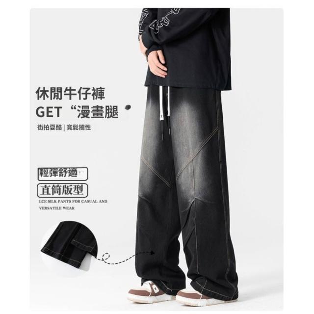 牛仔褲大尺碼寬鬆直筒褲男百搭寬鬆運動長褲青少年美式水洗寬版春秋休閒褲透氣牛仔長褲騎車寬褲鬆緊腰男裝褲子抽繩垂順工作褲男士