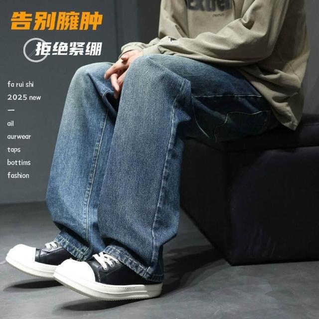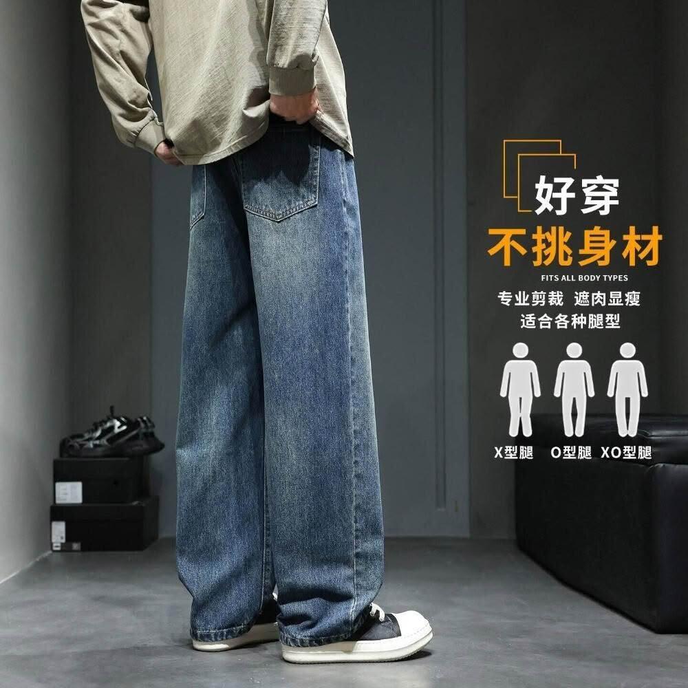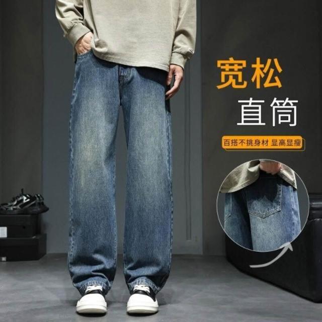 牛仔褲男復古休閒褲男長褲大尺碼戶外運動通勤商務工作褲寬鬆直筒男生褲子美式高街時尚百搭柔軟舒適彈力春秋青年男裝下著寬褲男士