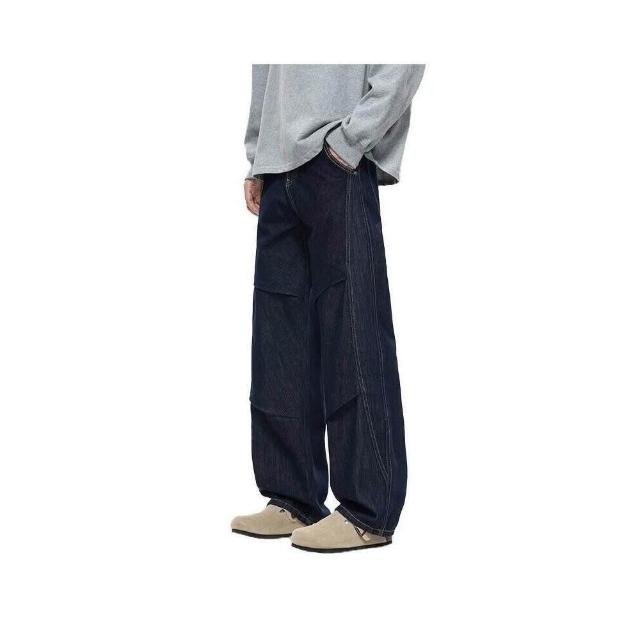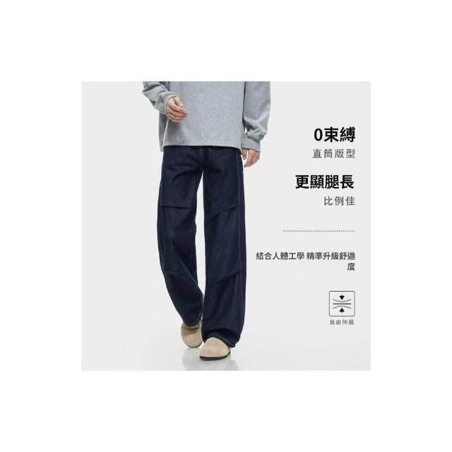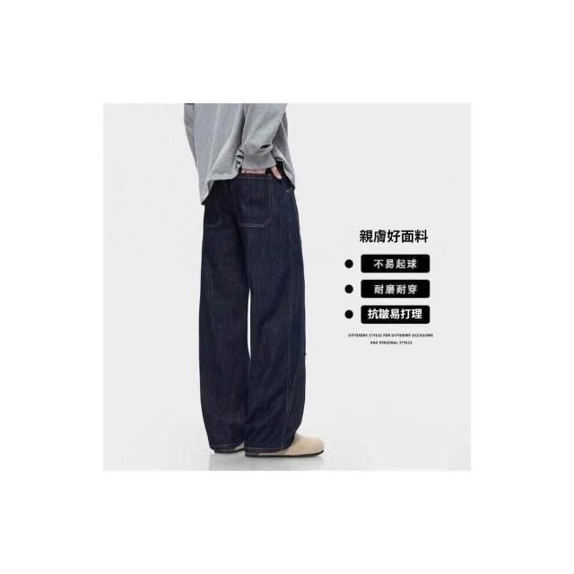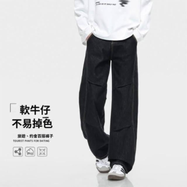 牛仔褲男原色牛仔褲男士秋冬厚款不褪色原牛直筒褲子男生潮牌寬松闊腿長褲顯瘦顯高休閑褲寬鬆運動褲工裝褲低腰水洗機能寬褲大尺碼