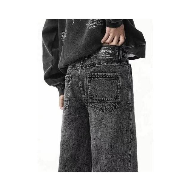 牛仔褲男寬松直筒長褲復古做舊水洗黑灰色老爹褲百搭休閒褲防風保暖褲彎刀褲彈性水洗秋冬寬鬆耐磨小腳直筒褲商務紳士修身做舊衝鋒