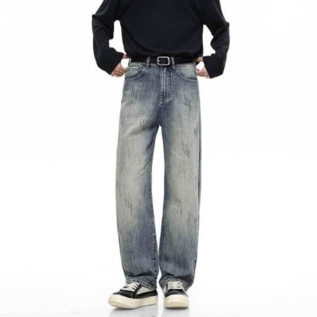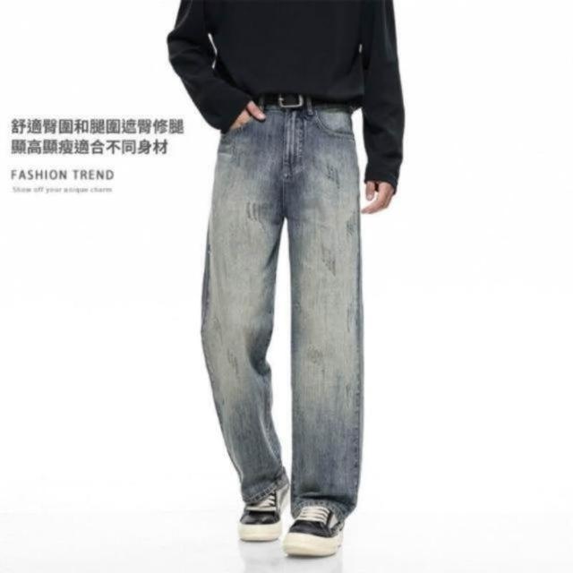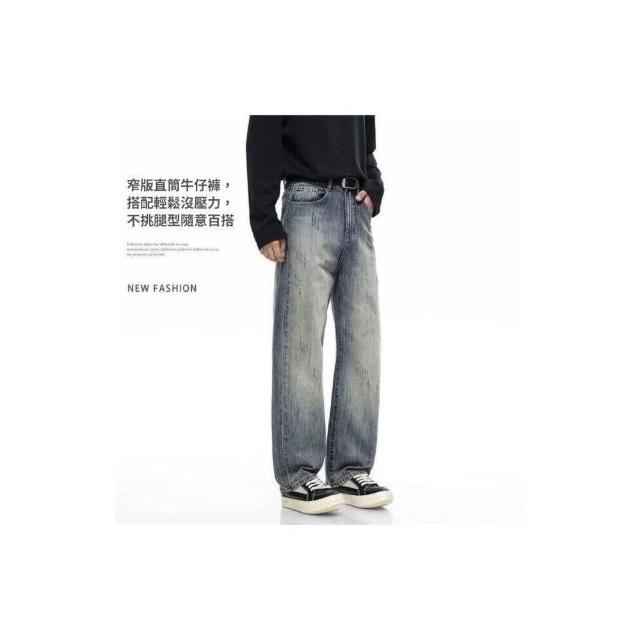 牛仔褲秋冬季爆款男士牛仔長褲子時尚潮牌休閑懷舊復古男寬松直筒褲青少年長褲機能寬褲大尺碼薄款休閒褲耐磨登山褲垂感韓國彎刀褲