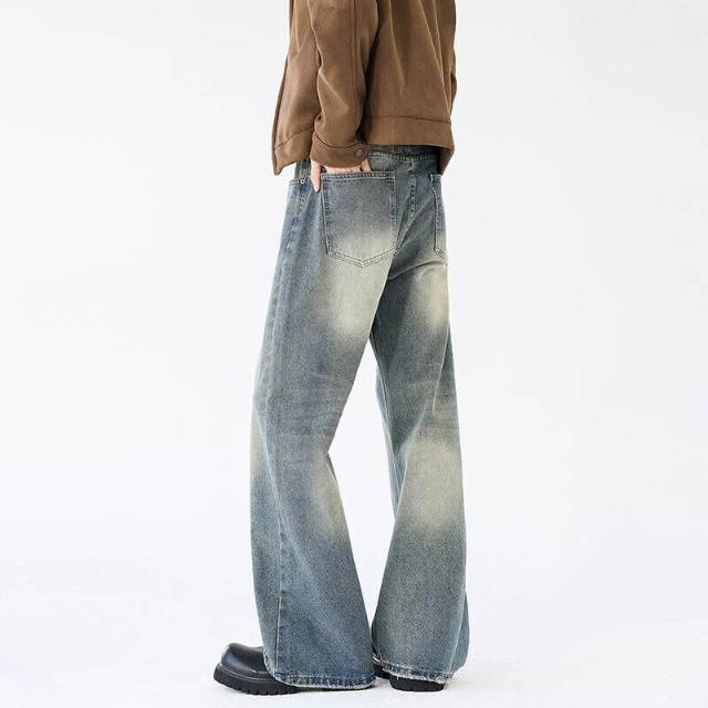 牛仔褲重磅美式水洗百搭男女寬松微喇褲子破洞做舊工裝褲低腰水洗寬褲大尺碼直筒休閒褲耐磨登山褲冬季機能薄款垂感韓版闊腿褲直筒