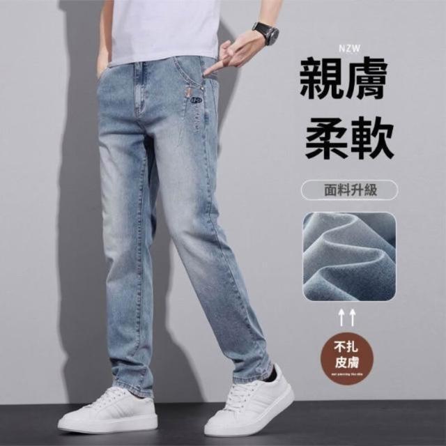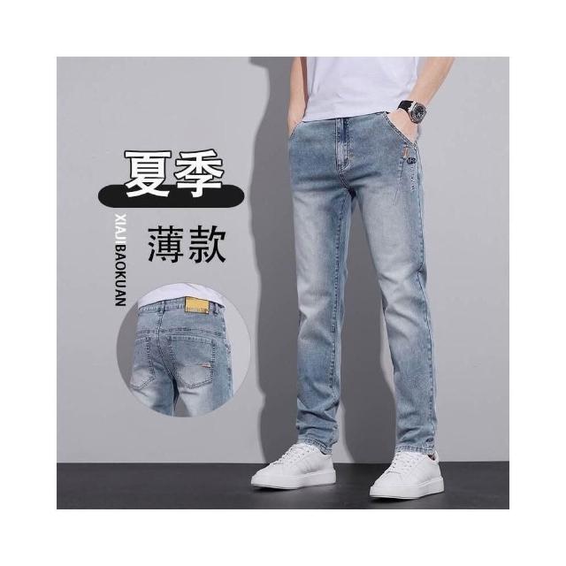 牛仔褲淺色男士夏季薄款透氣舒適百搭長褲新款春夏修身直筒2026男褲彈力休閑褲男潮牌時尚褲子長褲輕商務簡約時尚百搭彈力下著