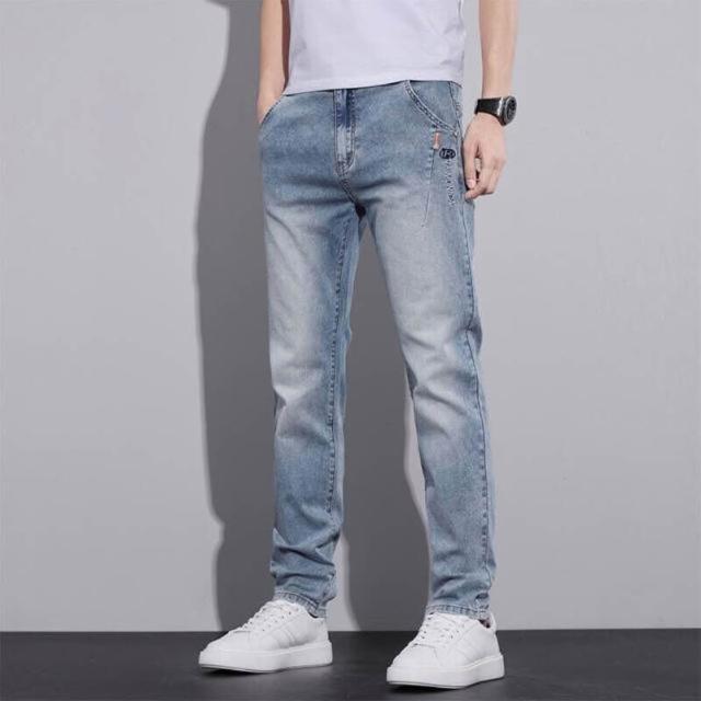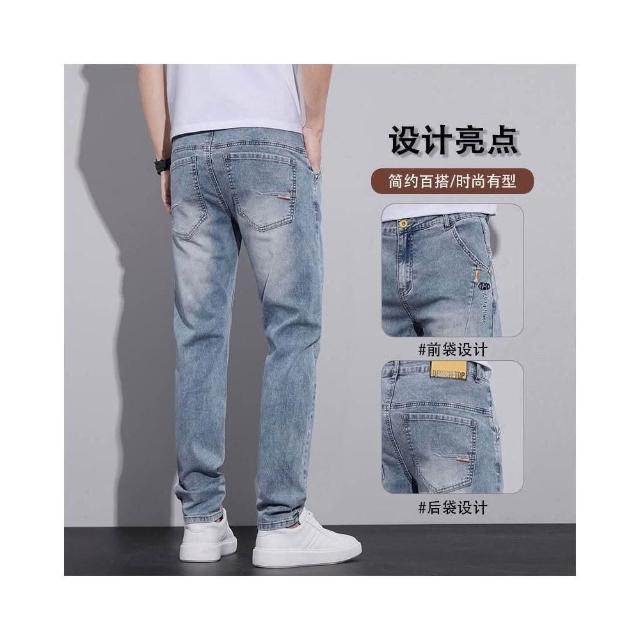 牛仔褲淺色男士夏季薄款透氣舒適百搭長褲新款春夏修身直筒2026男褲彈力休閑褲男潮牌時尚褲子長褲輕商務簡約時尚百搭彈力下著