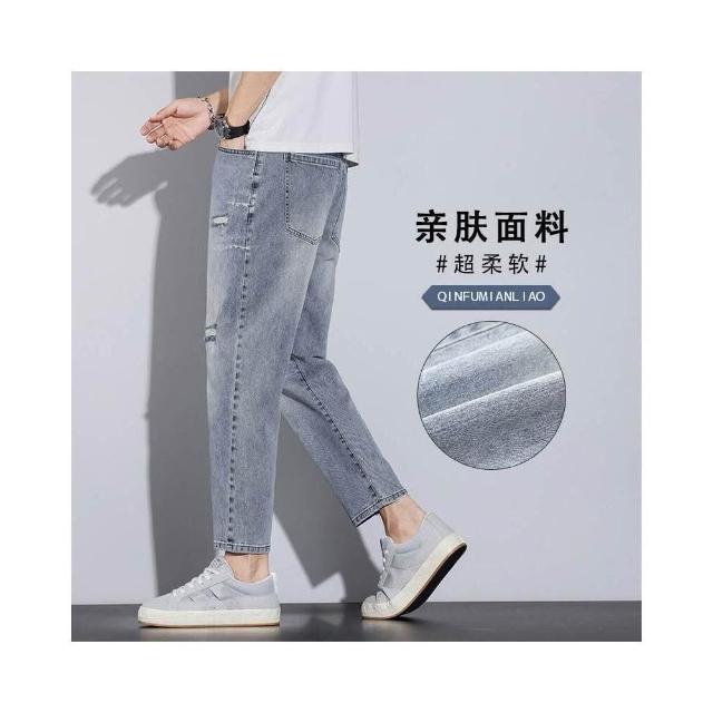 冰感薄款九分牛仔褲男春夏潮流時尚棉彈休閑褲男士百搭青少年淺色潮男褲子直筒褲-大呎碼商務直筒褲微喇褲美式柔軟舒適爸爸工作褲