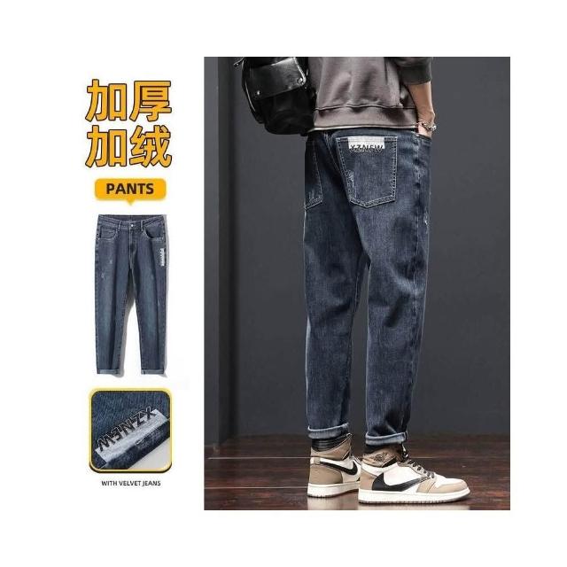 牛仔褲加絨男士秋冬季寬松錐形直筒褲新款春秋彈力休閑長褲子男百搭顯高顯瘦運動褲防寒防風發熱長褲輕商務簡約時尚百搭彈力刷毛褲