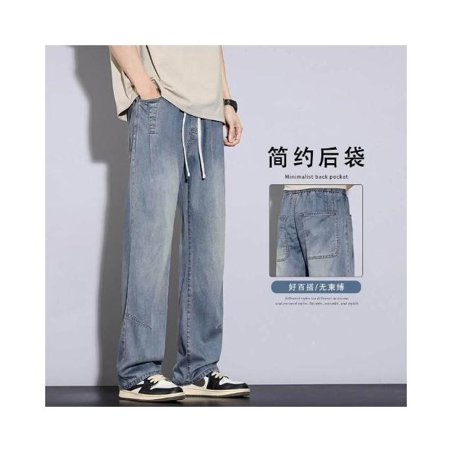 牛仔褲夏季薄款天絲萊賽爾男款寬松加肥加大碼闊腿褲2026新款春夏超薄天冰絲褲男直筒休閑褲直筒褲微喇褲美式柔軟舒適爸爸辦公