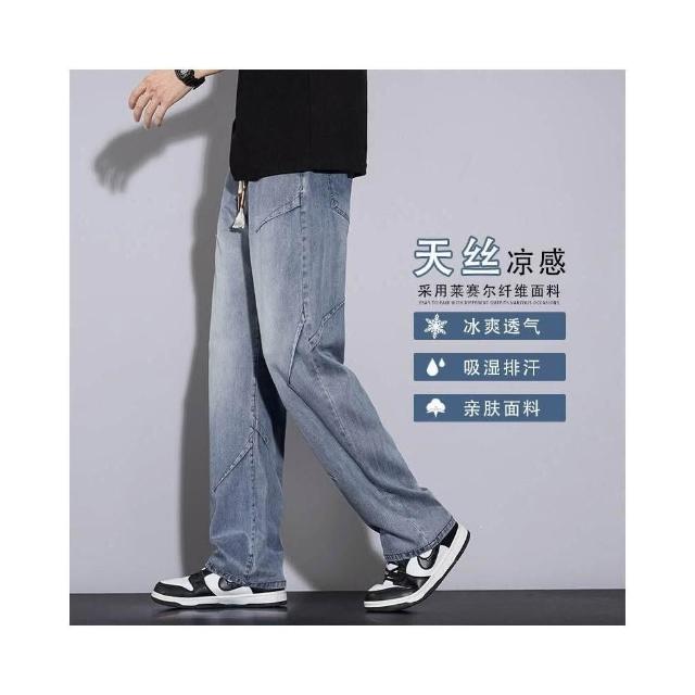 牛仔褲天絲復古松緊腰男夏季薄款透氣青少年彈力簡約抽繩闊腿褲男新款輕薄冰感透氣天萊塞爾長褲直筒褲美式柔軟舒適爸爸辦公工作褲