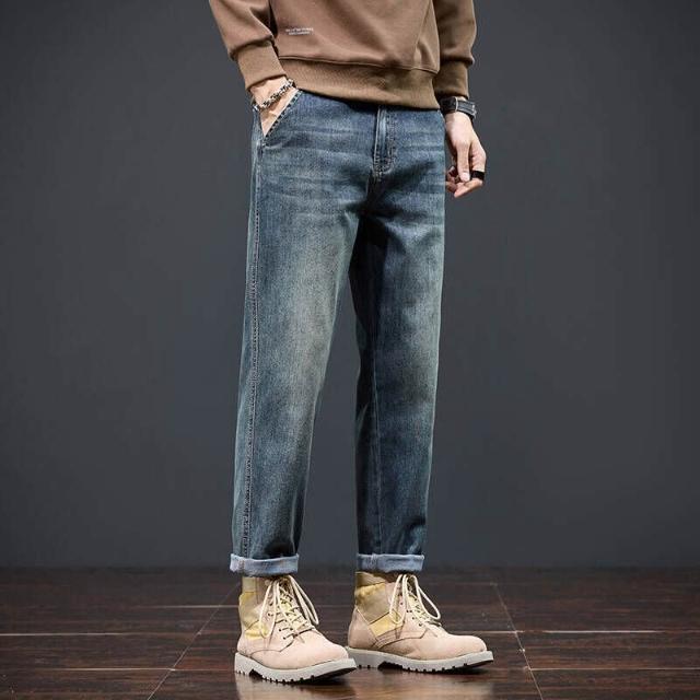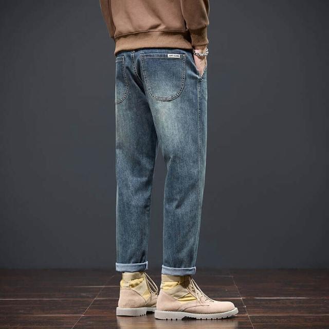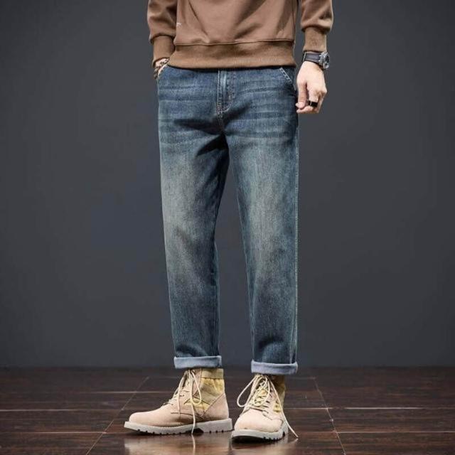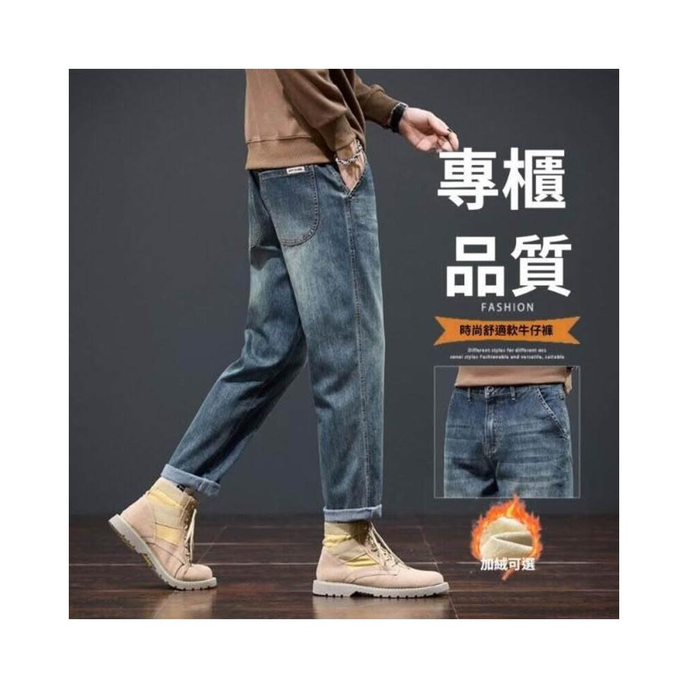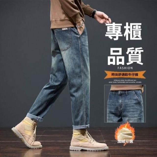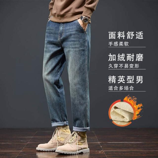 牛仔褲加絨男秋冬潮流時尚寬松直筒褲男冬季加厚保暖彈力小腳褲男顯瘦休閑長褲子彈力美式柔軟舒適爸爸保暖工作褲彈性防風運動長褲