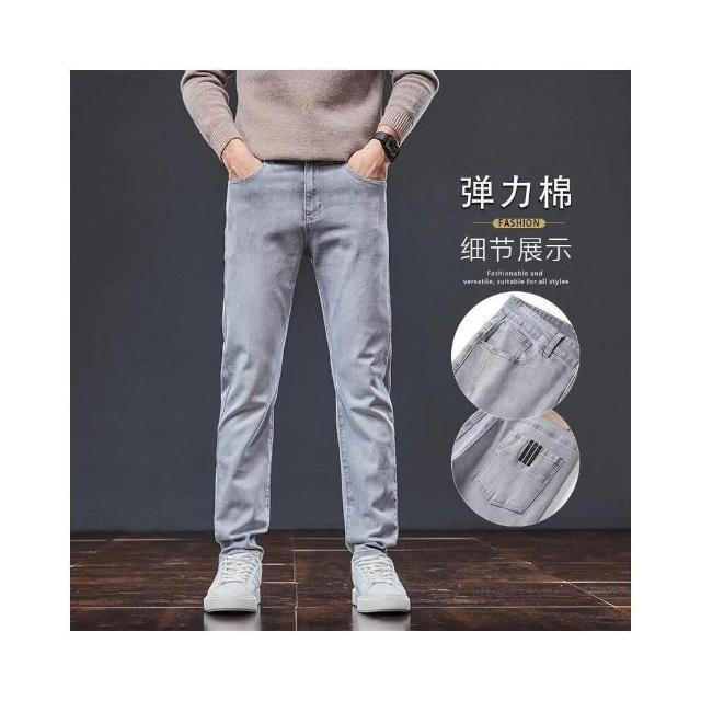 牛仔褲男士春秋季修身彈力高端水洗潮流灰色休閑長褲高品質時尚潮流彈性運動長褲防刮耐磨工作褲大尺碼工裝褲防風休閒褲水洗登山褲