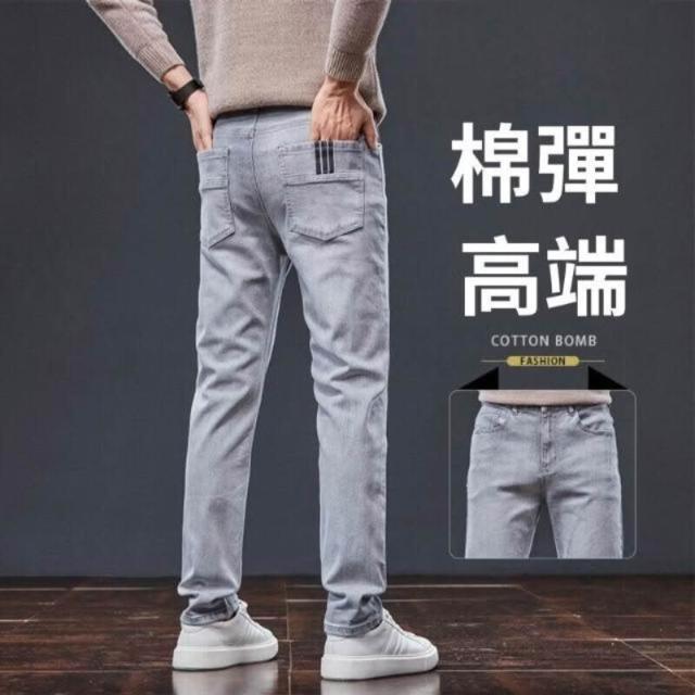 牛仔褲男士春秋季修身彈力高端水洗潮流灰色休閑長褲高品質時尚潮流彈性運動長褲防刮耐磨工作褲大尺碼工裝褲防風休閒褲水洗登山褲