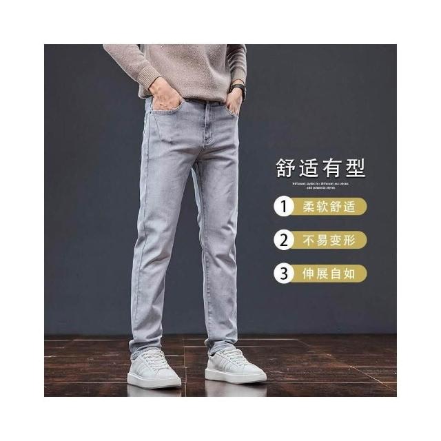 牛仔褲男士春秋季修身彈力高端水洗潮流灰色休閑長褲高品質時尚潮流彈性運動長褲防刮耐磨工作褲大尺碼工裝褲防風休閒褲水洗登山褲