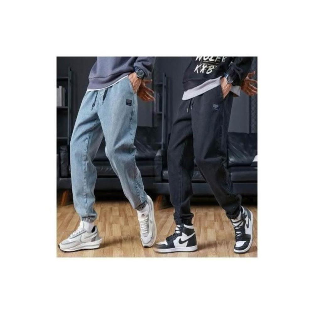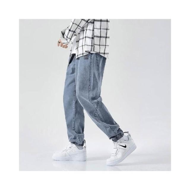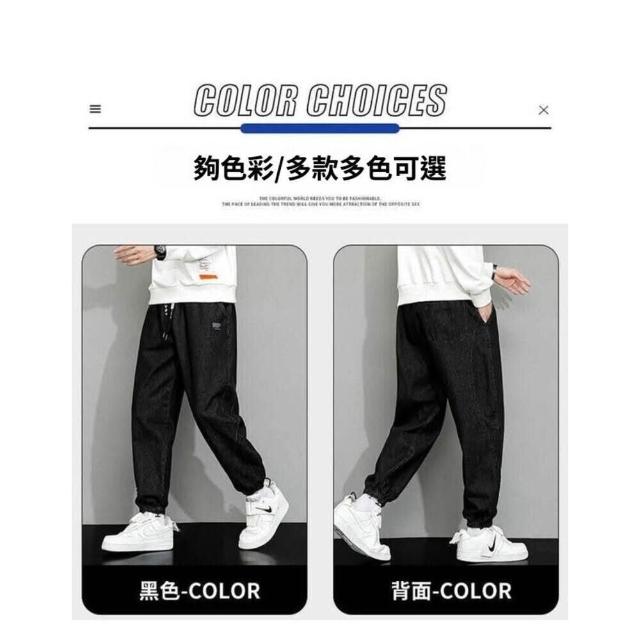 九分牛仔褲男大尺碼彈性寬褲男生春秋季薄款透氣長褲鬆緊束口哈倫休閒褲男款寬鬆耐磨工作褲美式高街垂感顯瘦牛仔長褲鬼洗牛仔褲