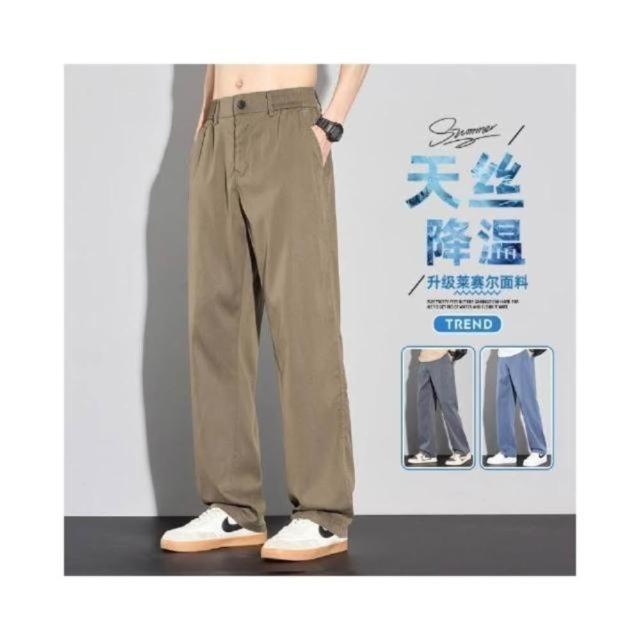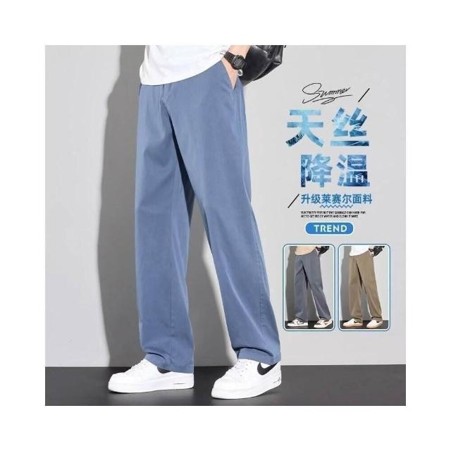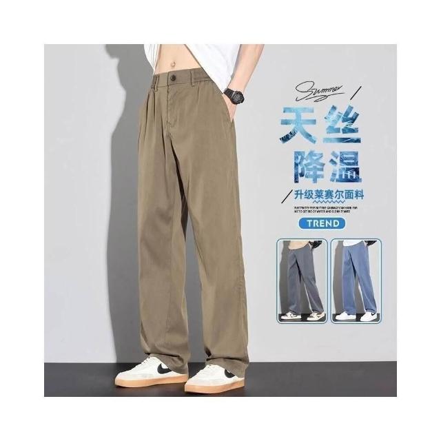 涼感寬褲男夏季輕薄透氣排汗墜落感天絲西裝褲男直筒休閒冰絲長褲外出百搭通勤工作褲冰絲西褲時尚闊腿寬鬆落地彎刀褲