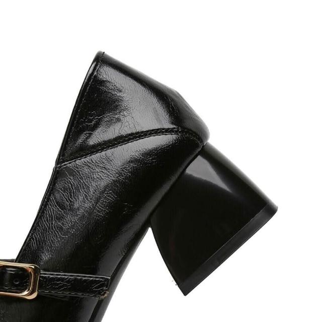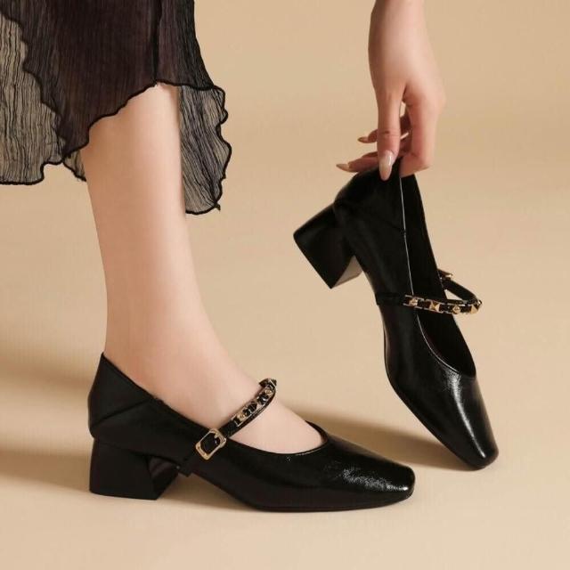 瑪莉珍鞋女厚底工作鞋休閒運動鞋夏季新款法式一字帶百搭漆皮扣帶粗跟瑪麗珍女鞋久站不累腳樂福鞋一腳蹬懶人鞋圓頭不磨腳高跟鞋