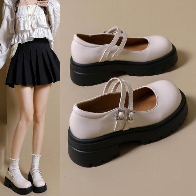 樂福鞋女厚底小皮鞋春季新款英倫學院風亮皮高跟鞋圓頭增高瑪麗珍女鞋防水止滑穆勒鞋久站不累腳瑪莉珍鞋運動休閒鞋透氣耐磨粗跟鞋