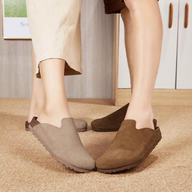 勃肯鞋軟木真皮男女大尺碼row風軟面懶人一腳蹬厚底大頭半拖秋款寬楦平底休閑鞋止滑耐磨穆勒鞋經典款麂皮韓版包頭半拖鞋時尚
