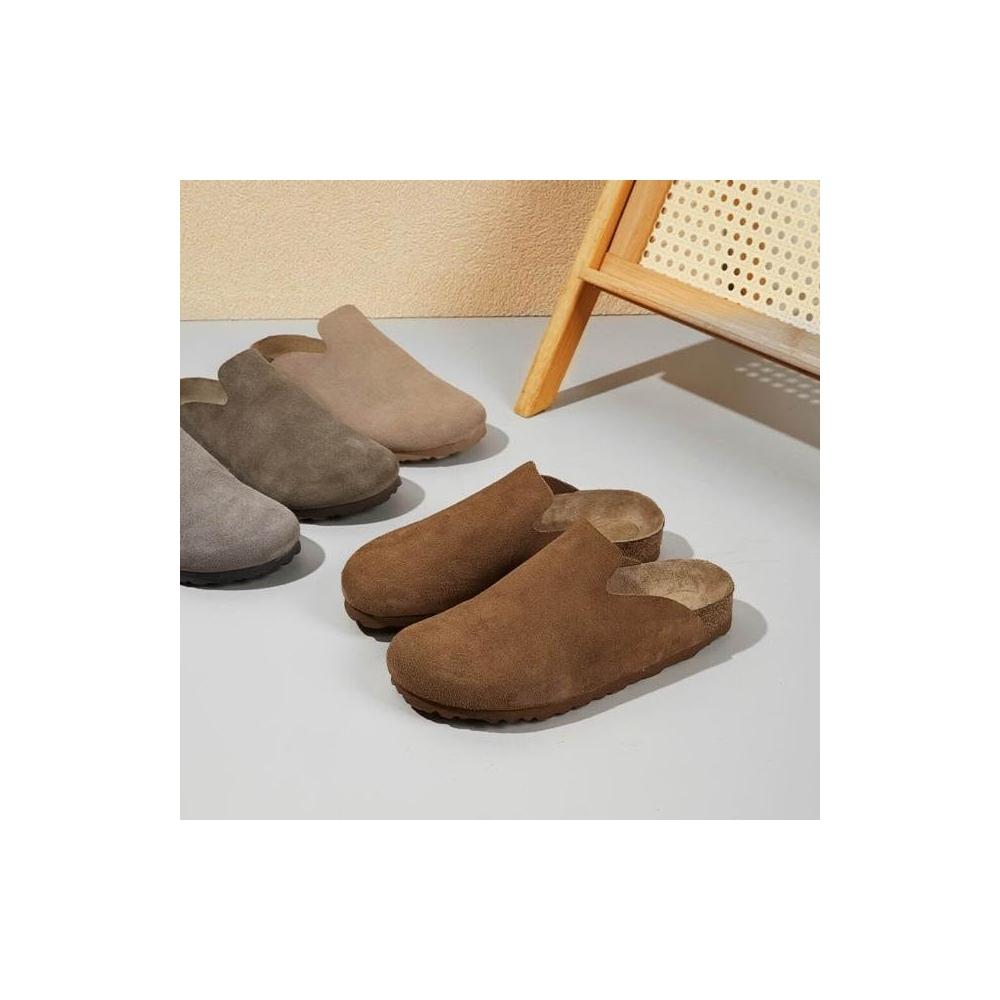 勃肯鞋軟木真皮男女大尺碼row風軟面懶人一腳蹬厚底大頭半拖秋款寬楦平底休閑鞋止滑耐磨穆勒鞋經典款麂皮韓版包頭半拖鞋時尚