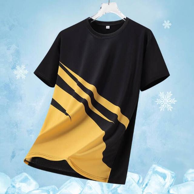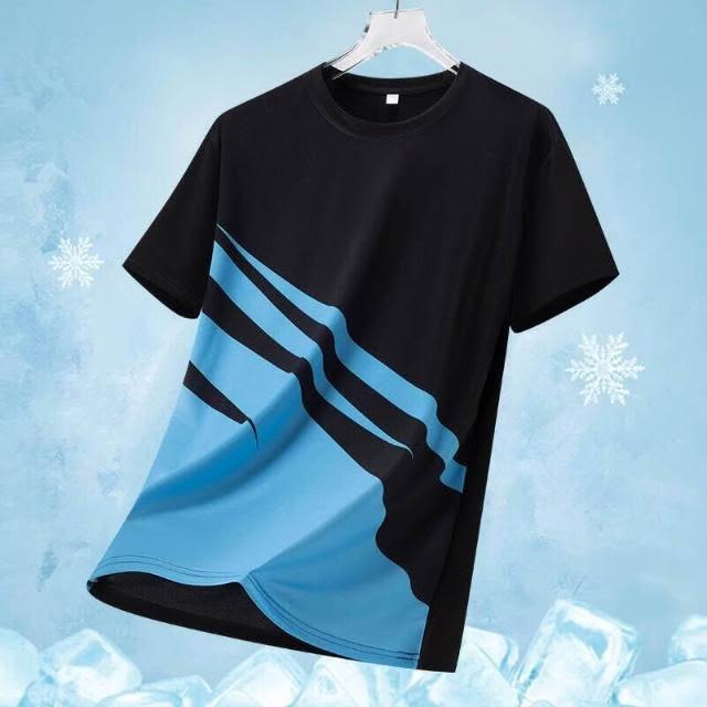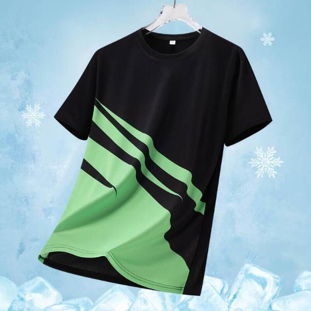 短袖上衣男大尺碼吸濕排汗衣涼感衣薄冰絲短袖T恤運動短版上衣男生登山透氣速乾衣服男裝跑步健身衣高爾夫球衣羽球衣夏天寬鬆t恤