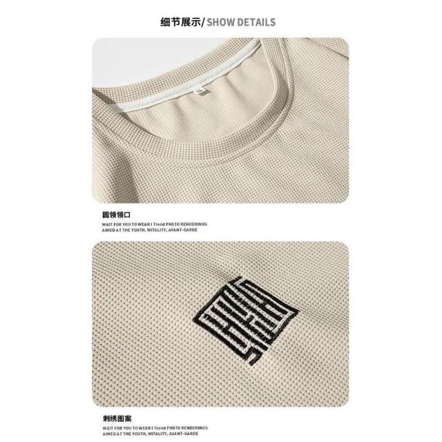 休閒運動套裝男華夫格夏季大碼兩件套黑色運動短褲寬鬆短袖T恤速乾透氣吸濕排汗大學T薄款夏天涼爽日式柔軟舒適五分褲男生帥氣