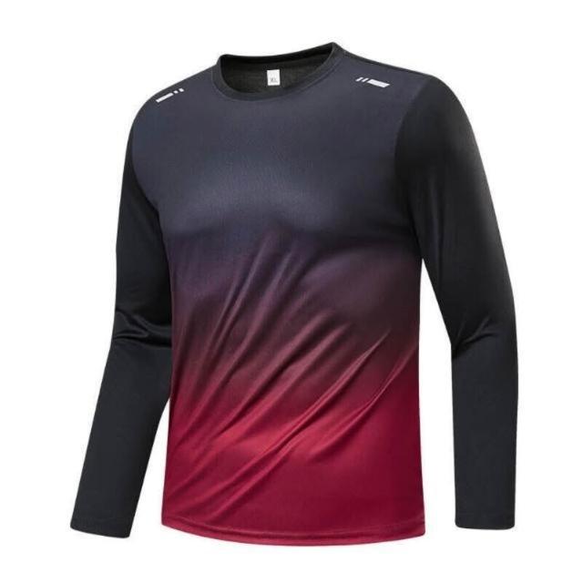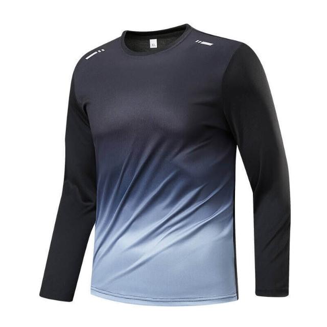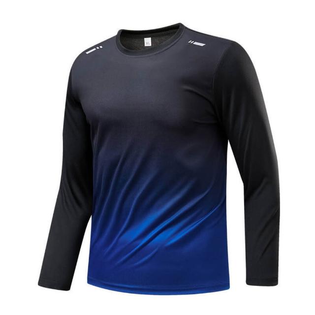 長袖男彈力內搭衣運動吸濕排汗衫登山透氣健身衣圓領套頭漸變色衛衣速乾衣涼感衣冰絲衣中年爸爸工作排汗衣休閒上衣長袖男