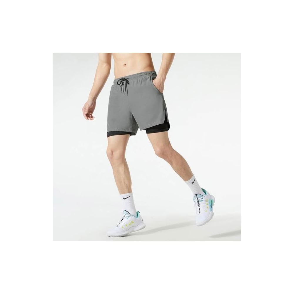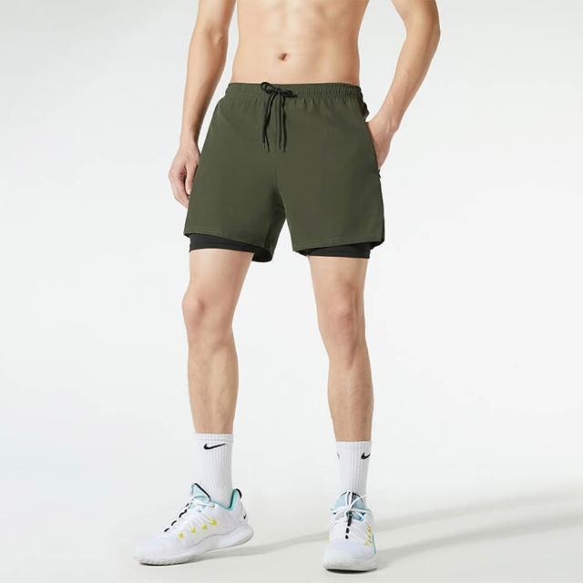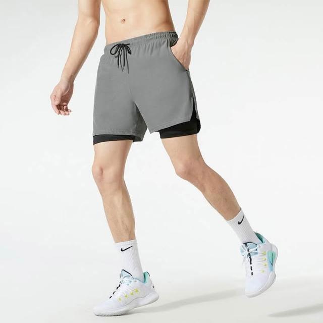 男壓力褲短褲緊身褲假兩件休閒壓縮褲夏季透氣高彈性塑身褲速乾男運動短褲跑步登山馬拉松田徑訓練褲高腰彈力中褲吸濕排汗男士束褲