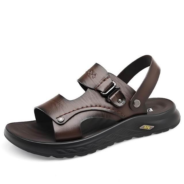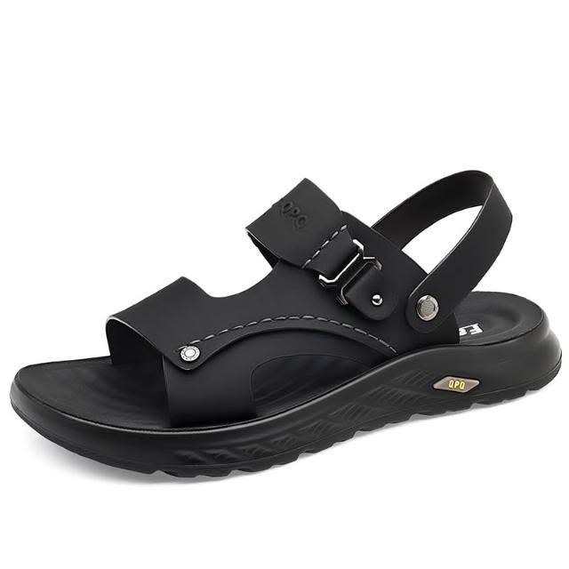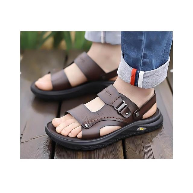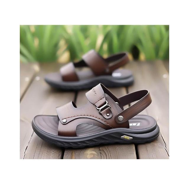 涼鞋男運動休閒鞋厚底增高足弓涼拖鞋戶外涼鞋健走沙灘鞋防臭防滑護趾護指防水真皮室外室內夾腳黑色懶人鞋夏季時尚舒適透氣浴室男生涼 鞋