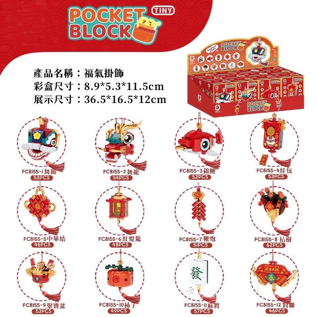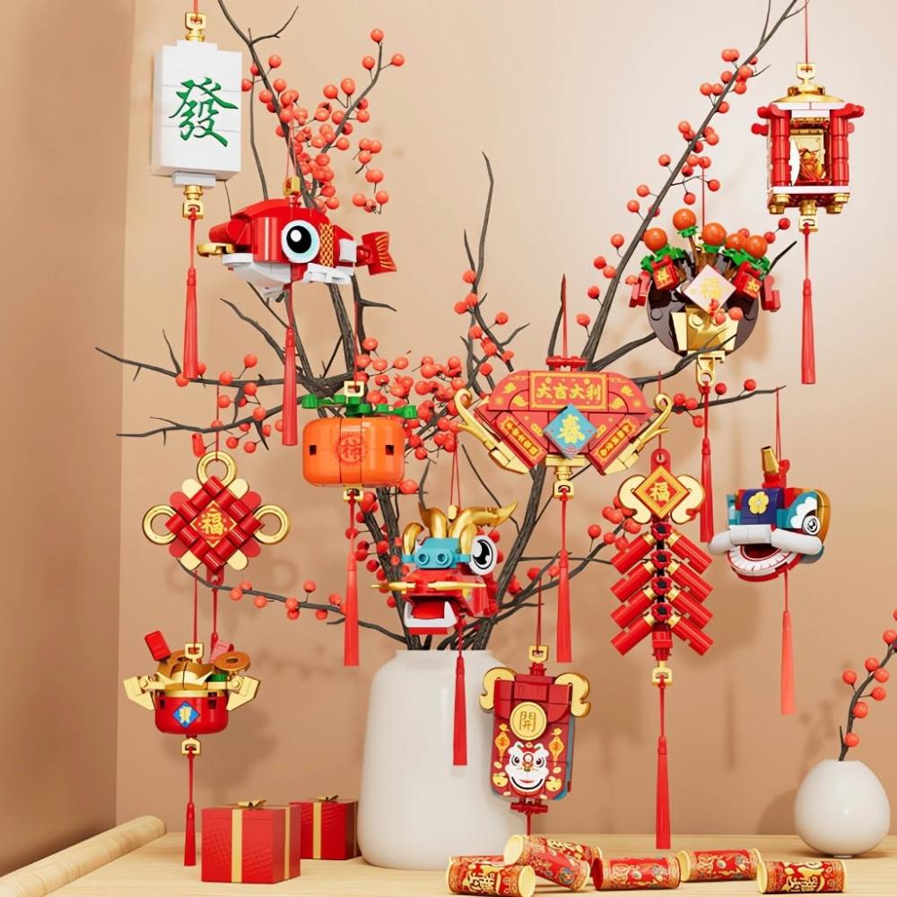 春節積木掛飾 招財掛飾 國潮積木 醒獅 年獸 聚寶盆 喜慶掛飾 新年禮物 創意掛件