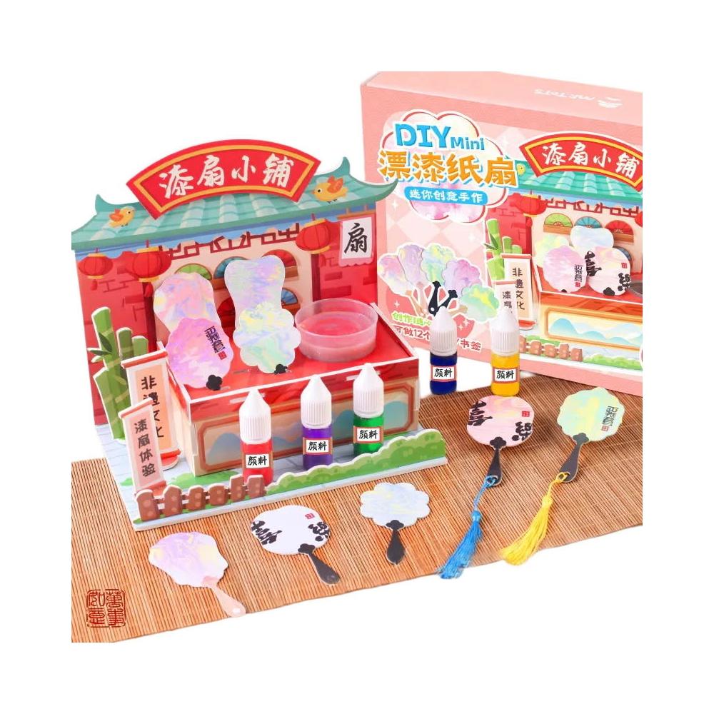 迷你漆扇小鋪 手工DIY玩具 創意漆扇 團扇 非遺漆扇 漂漆扇 扇子材料包