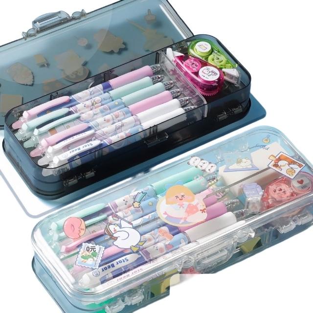 雙層透明筆盒 雙層鉛筆盒 分隔 大容量筆盒 學生文具盒 收納盒 高品質 便攜設計