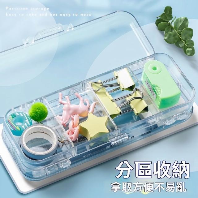 雙層透明筆盒 雙層鉛筆盒 分隔 大容量筆盒 學生文具盒 收納盒 高品質 便攜設計