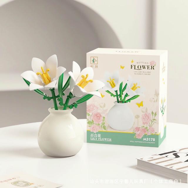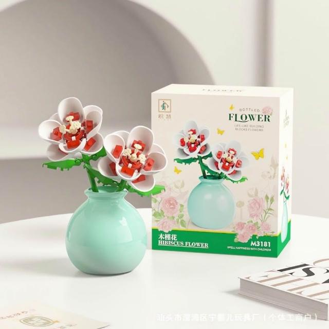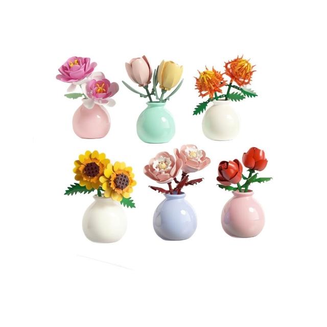 迷你彩色插花積木 微顆粒拼裝積木 交換禮物 精美擺飾 花瓶 居家氛圍裝飾 仿真積木花