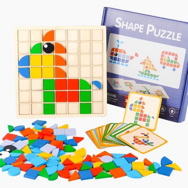 馬賽克3D立體拼圖 幼稚園拼圖教具 桌面遊戲 木製拼圖 益智玩具 早教教具