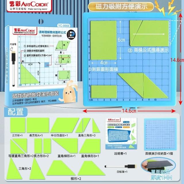 磁性多邊形面積演示學具 面積計算 週長演示器 數學敎具