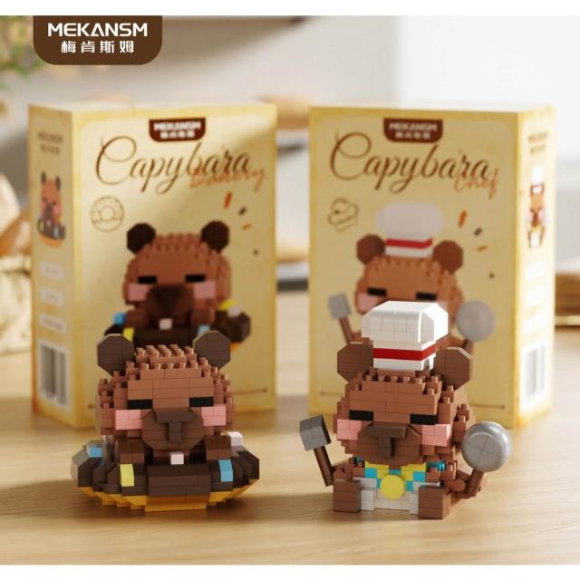 水豚烘焙系列積木 微顆粒積木 卡皮巴拉積木 精美桌面擺件 交換禮物