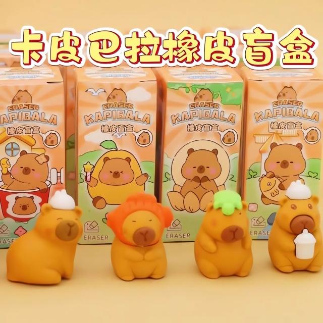 可愛水豚盲盒橡皮擦 開運盲盒 卡皮巴拉橡皮擦 立體橡皮擦 文具用品