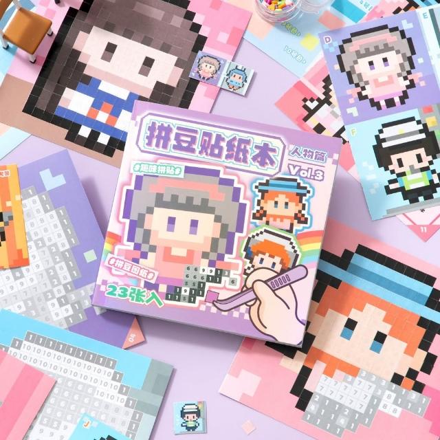卡通拼豆貼紙本 解壓玩具 色彩搭配 交換禮物 專注力訓練 舒壓小物 療愈貼紙