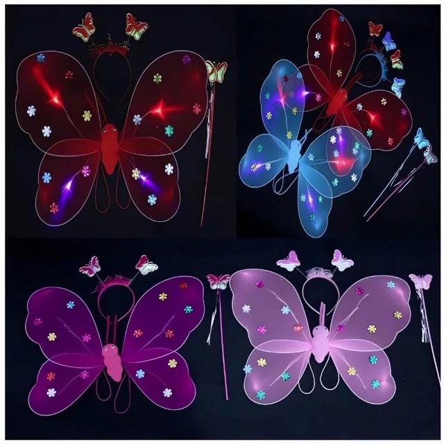 天使發光蝴蝶翅膀 夜光款 節日裝扮 小女孩禮物 蝴蝶公主 角色扮演 家家酒玩具 節日禮物 多款式 可愛髮箍手杖