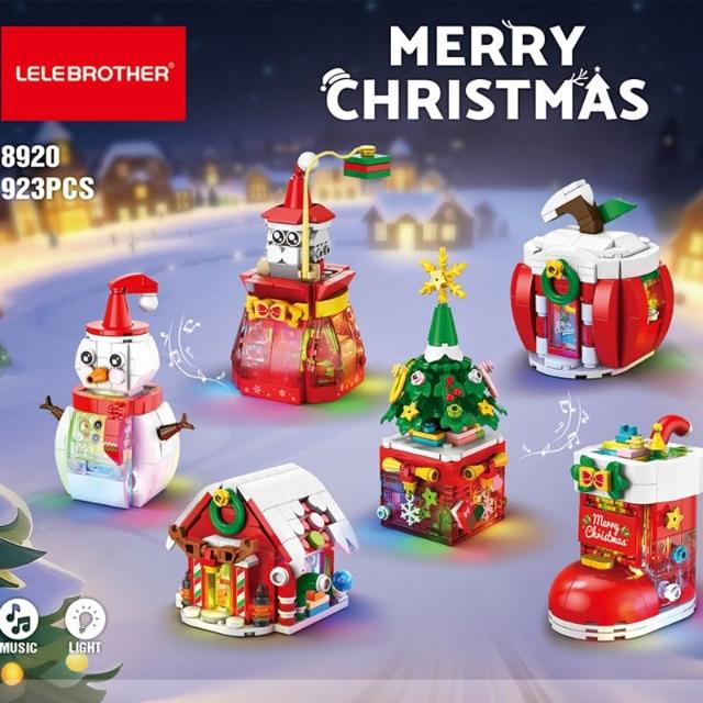 樂樂兄弟聖誕節拼裝積木 迷你積木 精緻擺件 微顆粒積木 聖誕禮物 發光發聲 聖誕裝飾 音樂盒積木