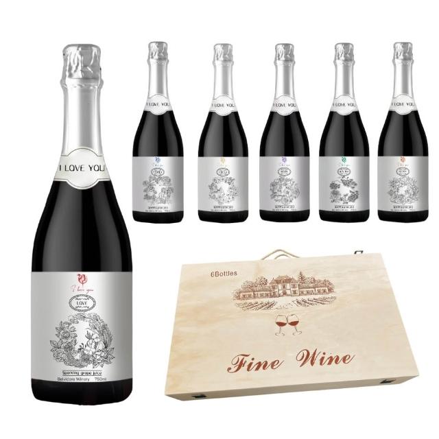 I LOVE YOU無酒精氣泡紅酒|澳洲原瓶進口 750ml×6入|贈質感紅酒木箱 (零酒精葡萄酒)