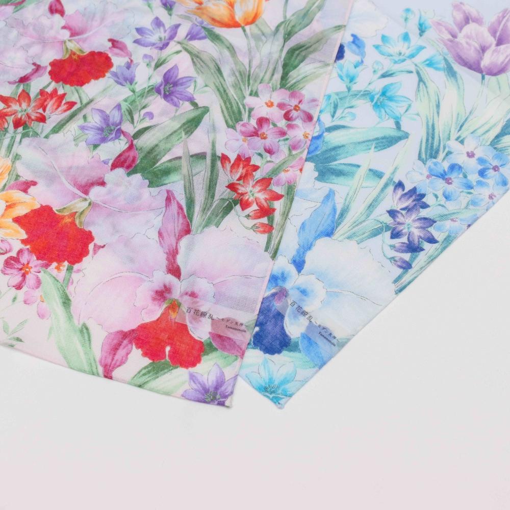 京都友禪染大判紗布手帕-洋花(藍/彩)