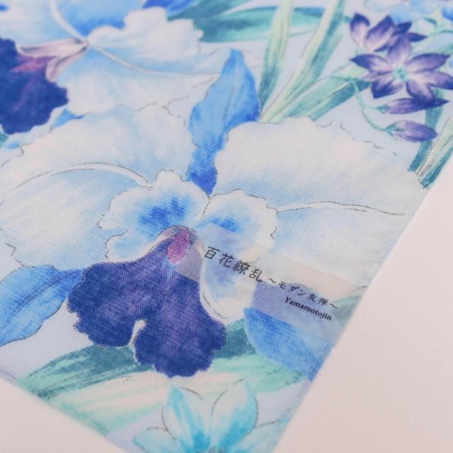京都友禪染大判紗布手帕-洋花(藍/彩)