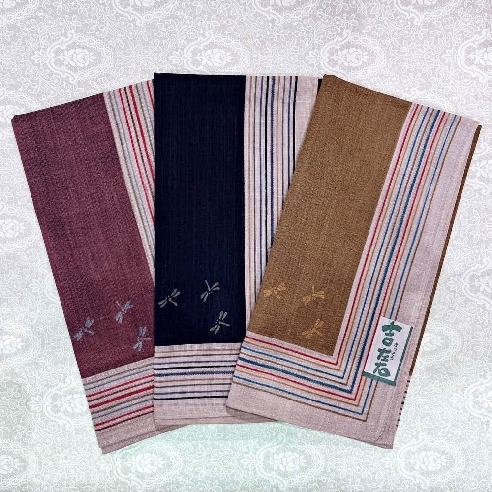 京都手帕-吉左右蜻蜓-方框(茶/紫/黑)