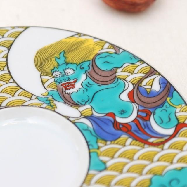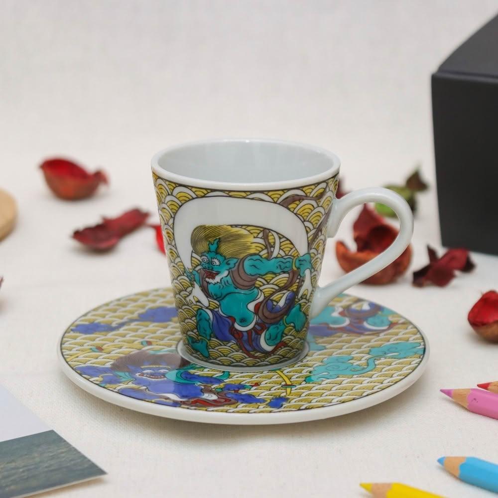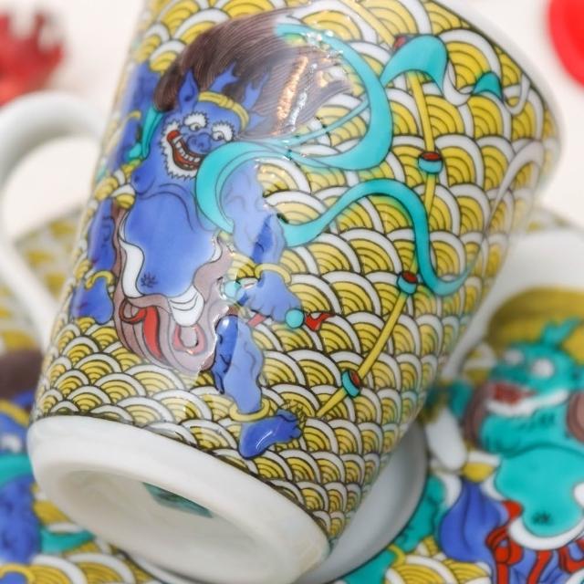 九谷燒青郊窯緣起小馬克杯盤組-風神雷神
