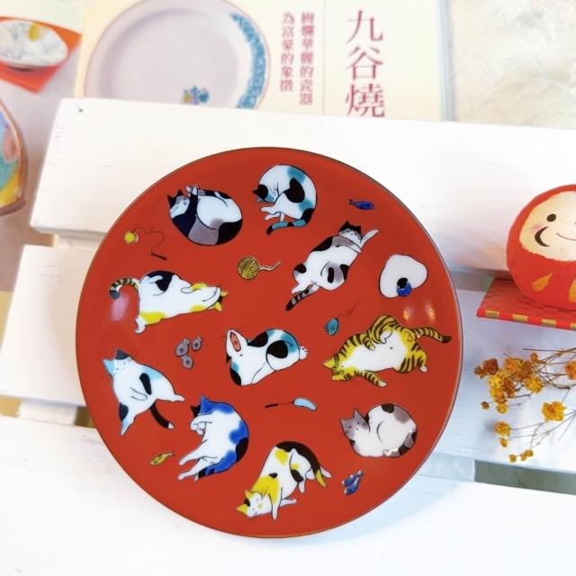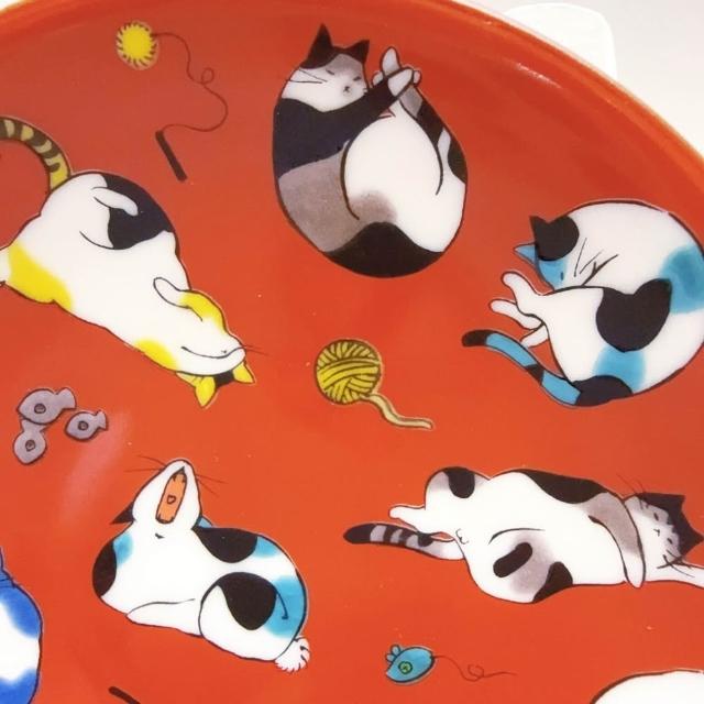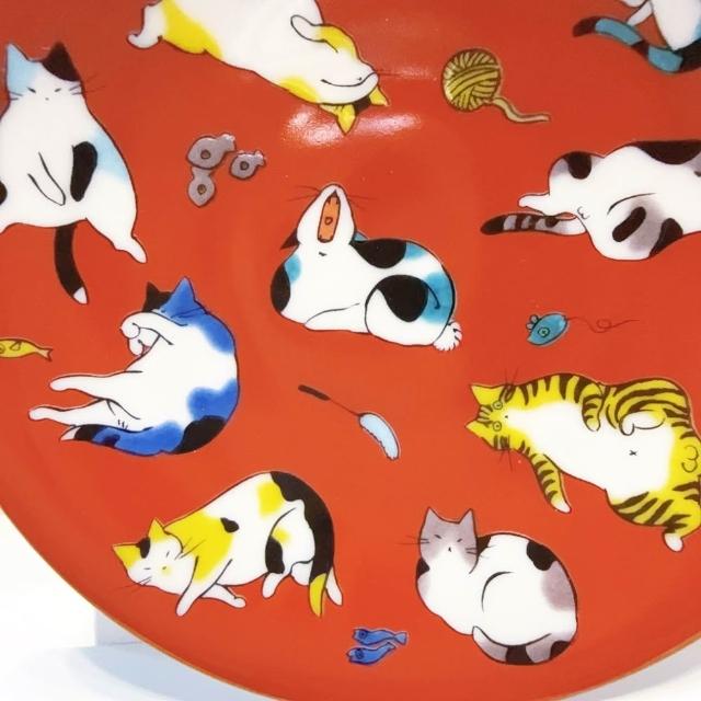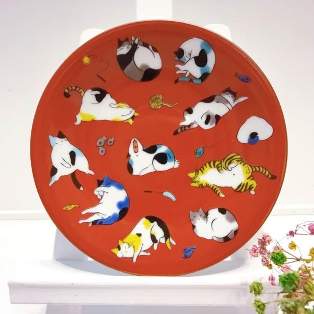 九谷燒青郊窯緣起小盤-貓的各種姿態