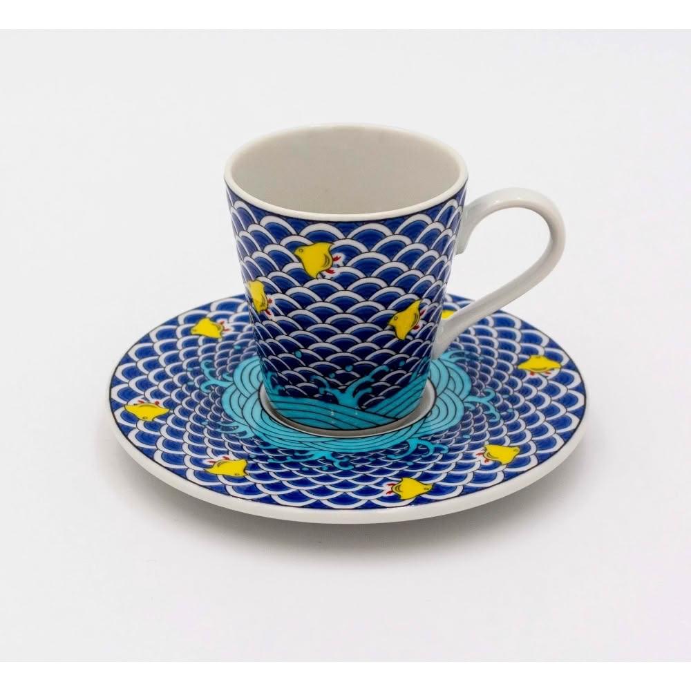 九谷燒青郊窯緣起小馬克杯盤組-千鳥