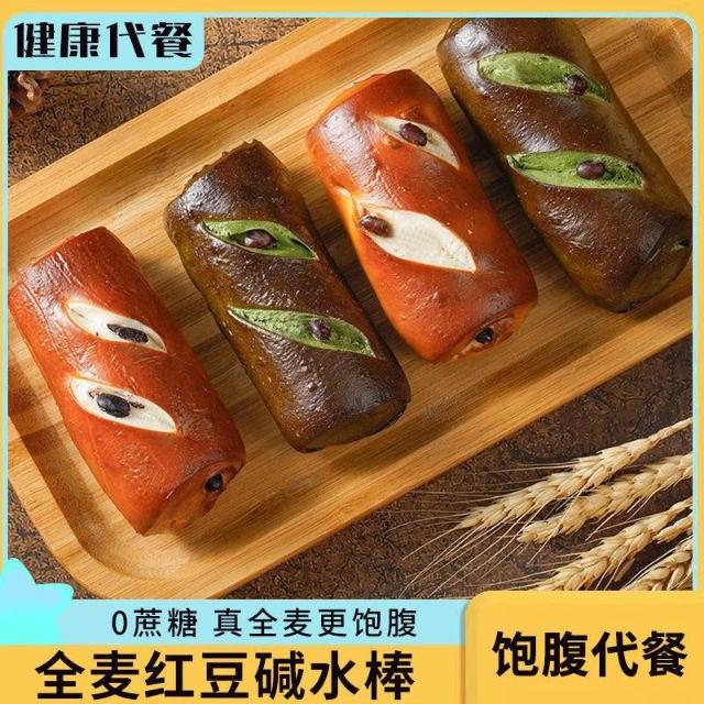红豆抹茶全麦面包低脂碱水欧式法棍0无糖精代餐宿舍休闲饱腹小零食