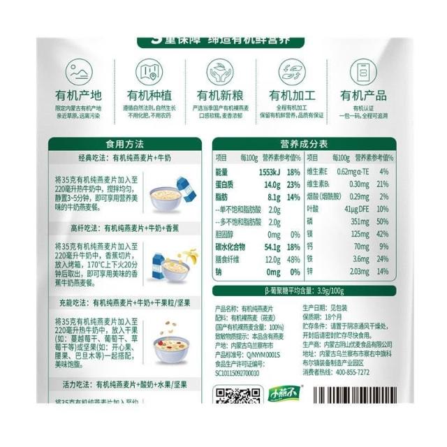 精選 優選 麥片 陰山優麥小燕子有機小包裝獨立包裝原味卽食免煮衝飲早餐純燕麥片